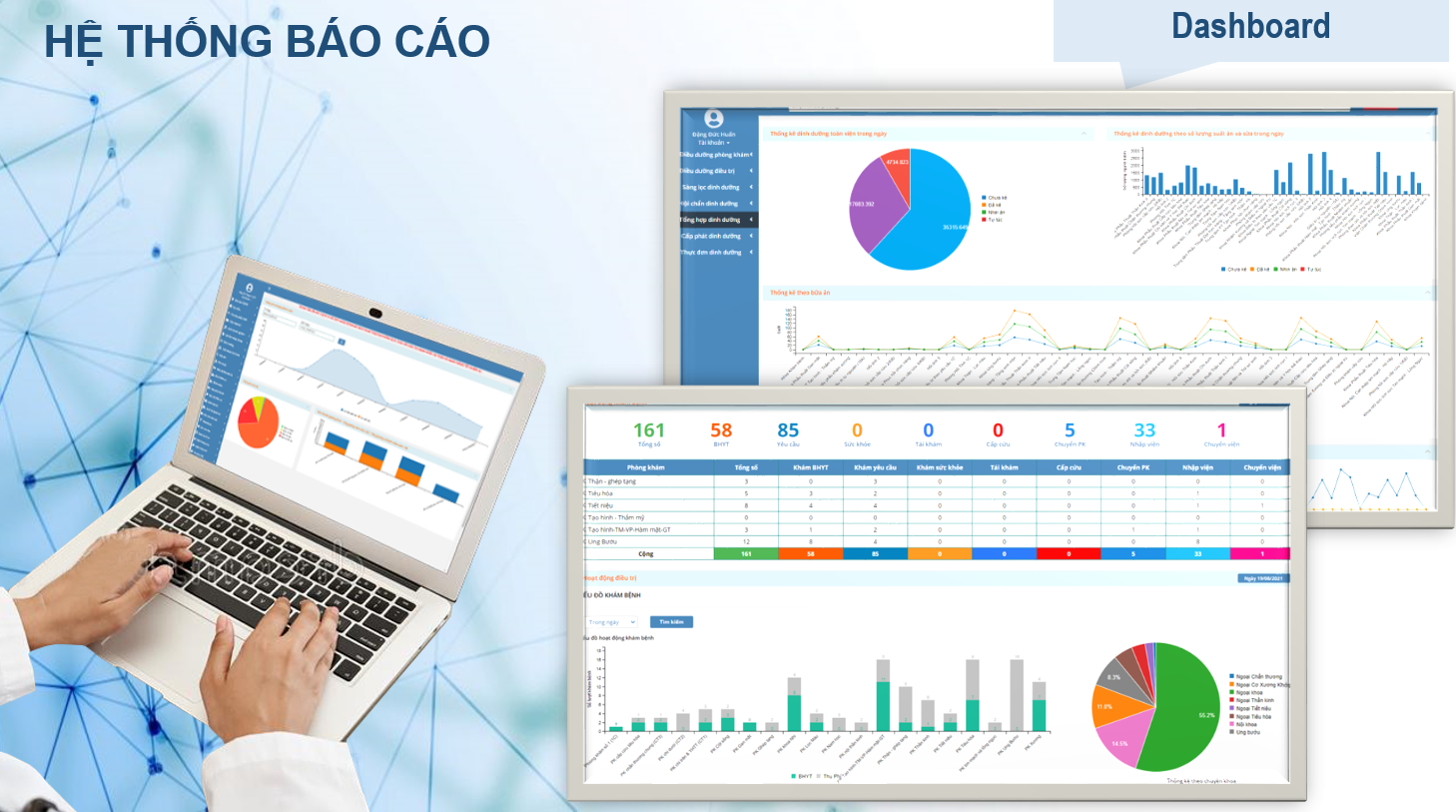 viện tổng thể, gồm nhiều tính năng phân hệ hoạt động đồng bộ, xuyên suốt trong các hoạt động của bệnh viện bao gồm: Trên 600 chức