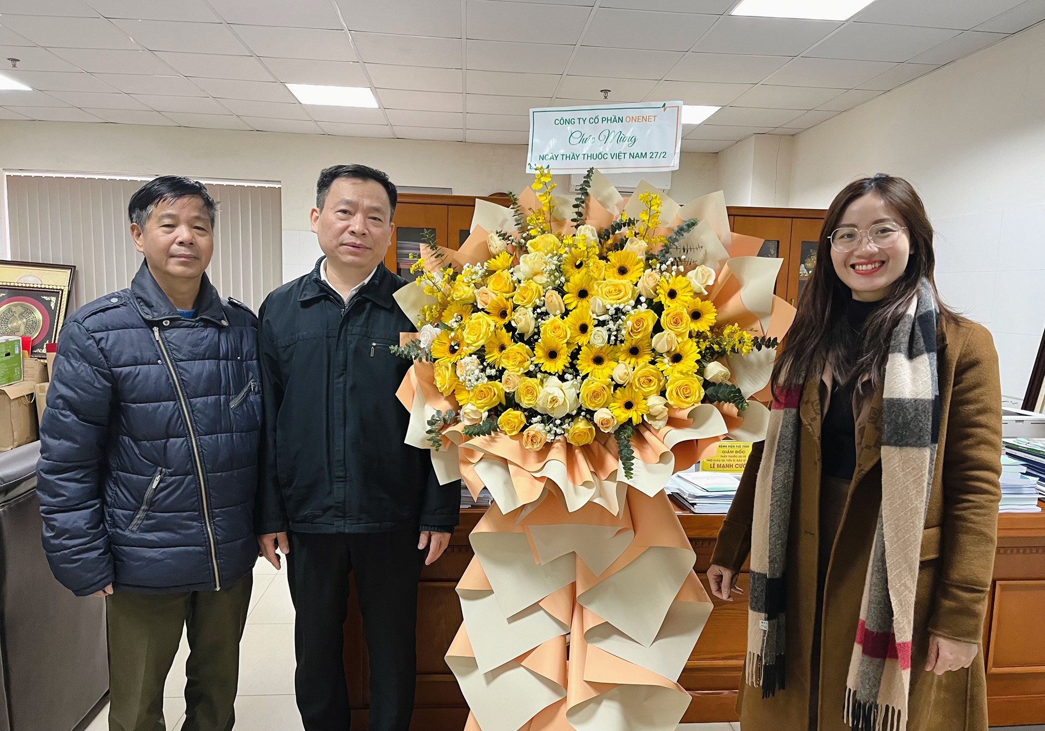 Đại diện ONENET trực tiếp đến tặng hoa, chúc mừng Ngày 27/2 đến Giám đốc Bệnh viện Tuệ Tĩnh cùng đội ngũ y bác sĩ, nhân viên y tế Bệnh viện.