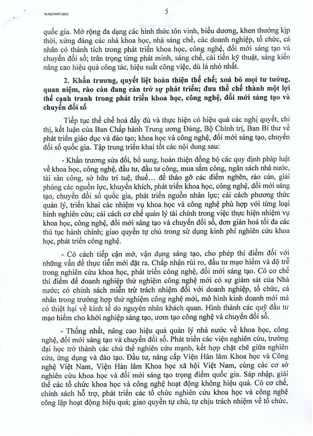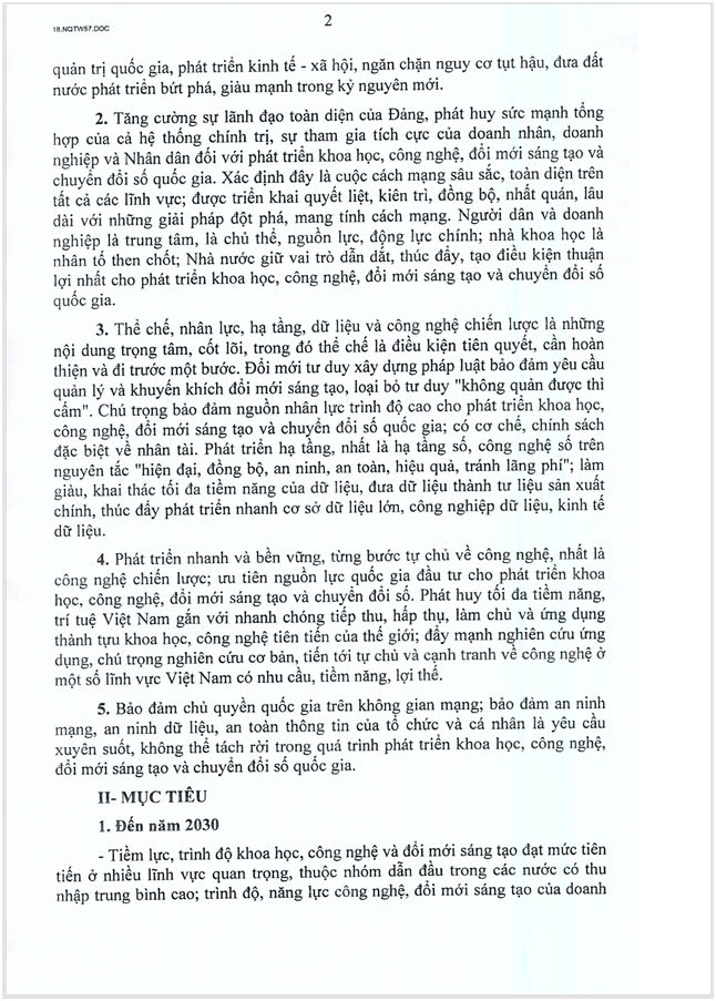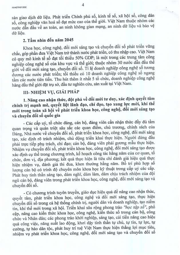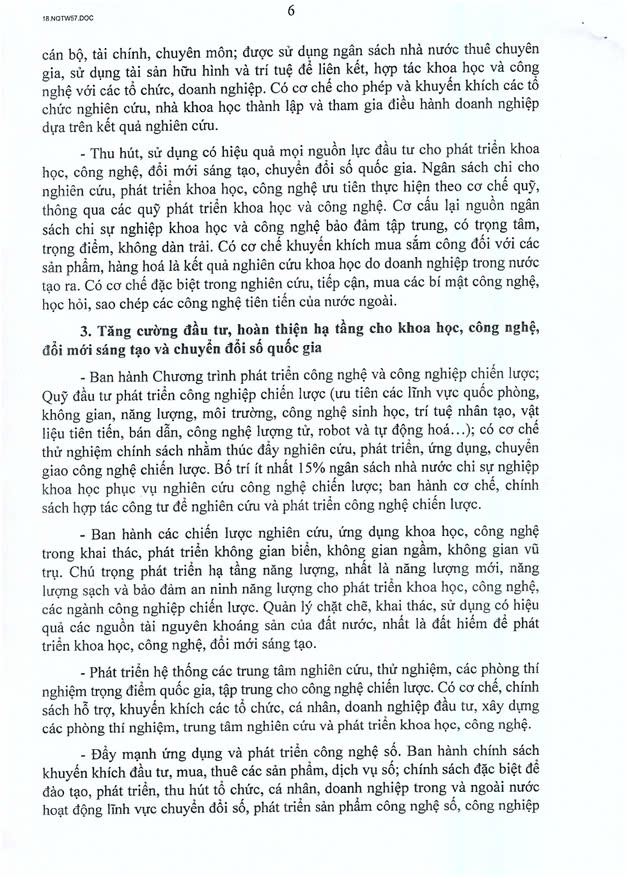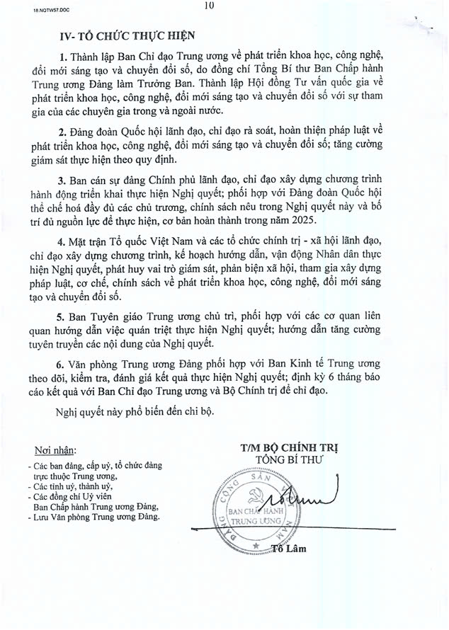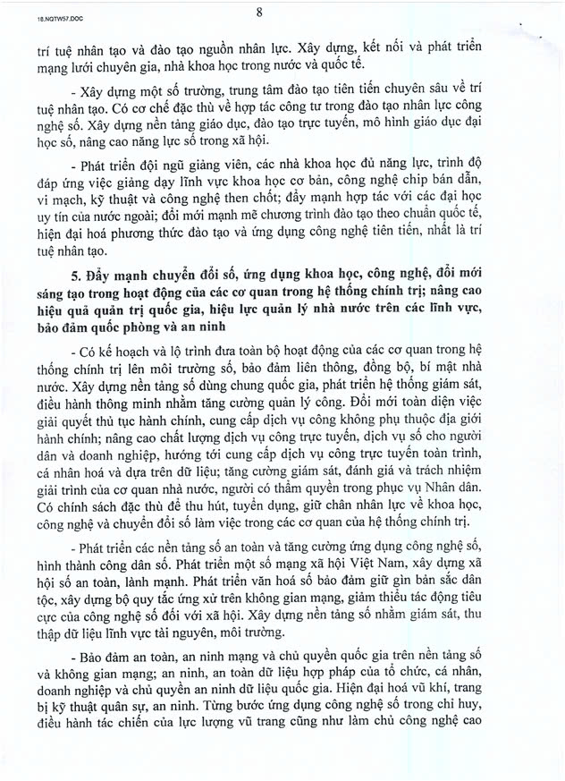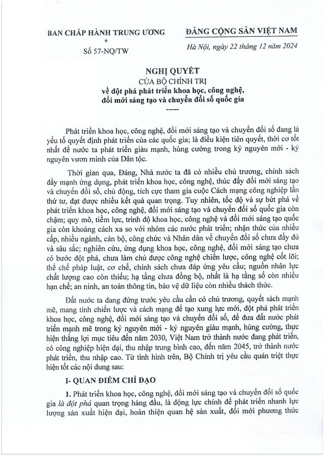 Dưới đây là toàn văn của Nghị Quyết 57-NQ/TW: