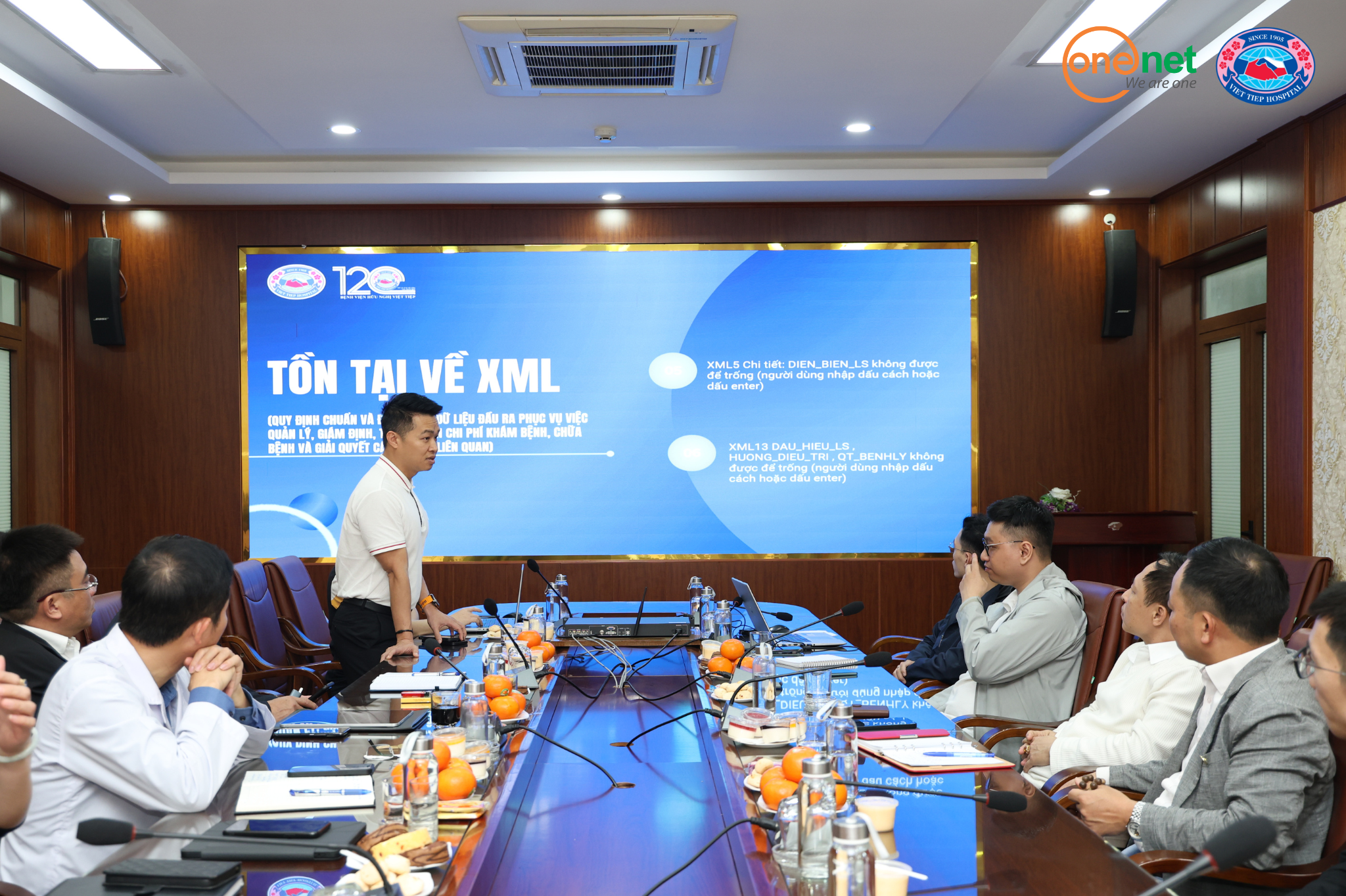 Anh Nguyễn Ngọc Tuấn - Trưởng phòng Triển khai của ONENET trình bày với phía Bệnh viện những đề xuất mới nhằm nâng cao hiệu quả công tác chuyển đổi số
