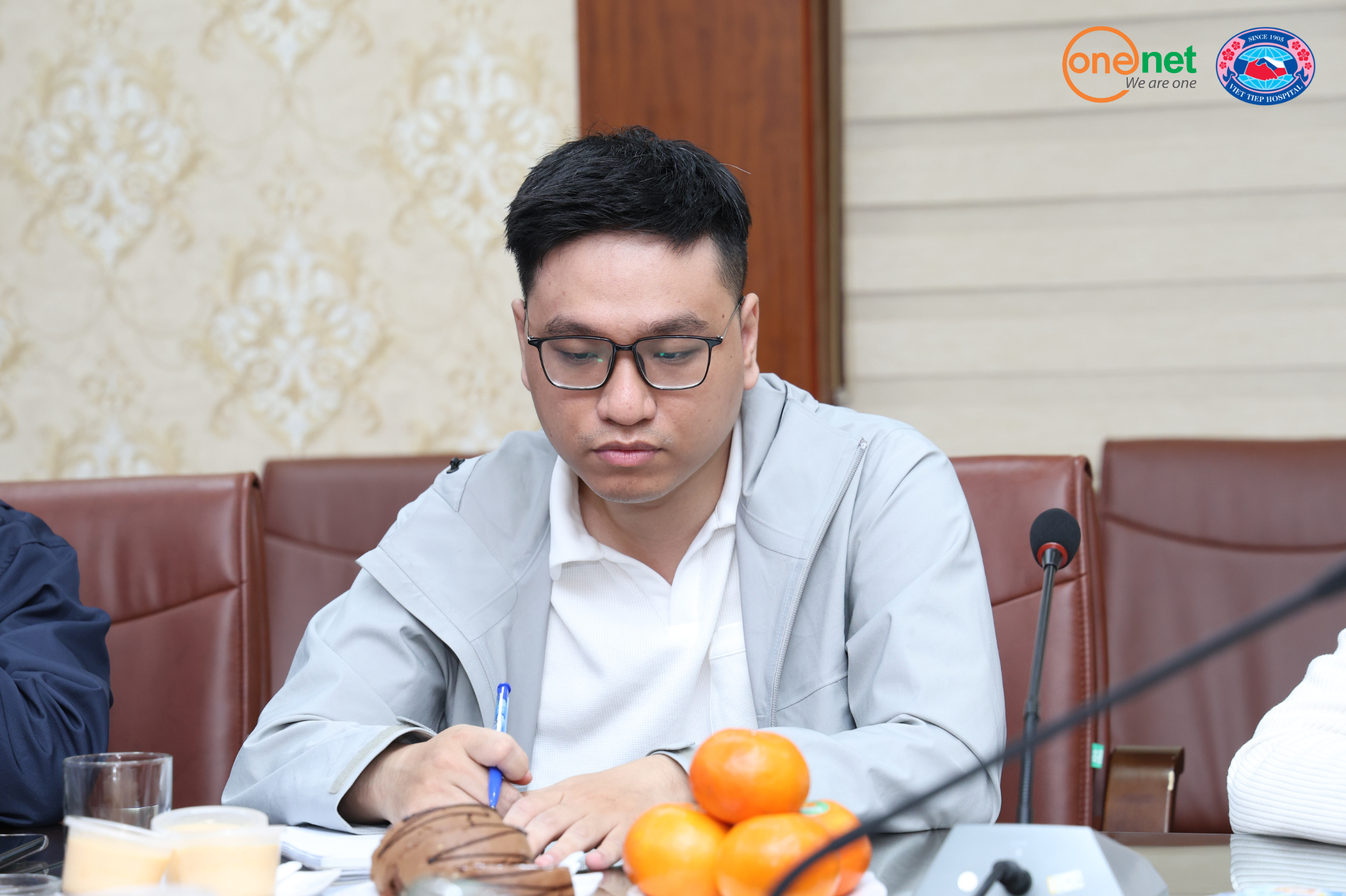 Anh Trần Trung Hiếu - Trưởng phòng Test & Support của ONENET nghiêm túc lắng nghe những ý kiến đánh giá của Bệnh viện để không ngừng nâng cao chất lượng dịch vụ hỗ trợ